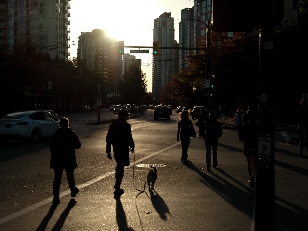 All it takes is a beautiful October golden hour in downtown Vancouver. I had a lot of fun experimenting with the contrast and shapes I could find on the medium format Fujifilm that I was borrowing.
