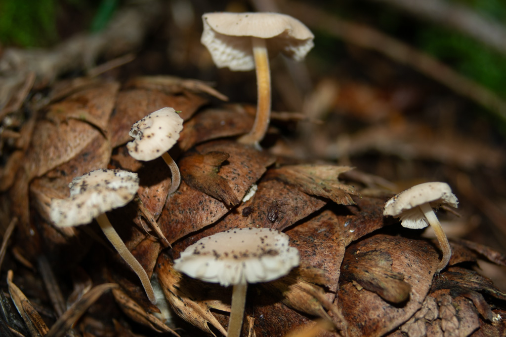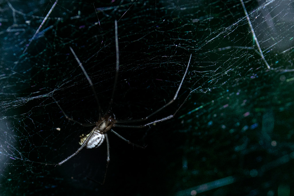 Some exploration with a flash and a macro lens in the forest. By my count there are 7 critters scattered around these photos.